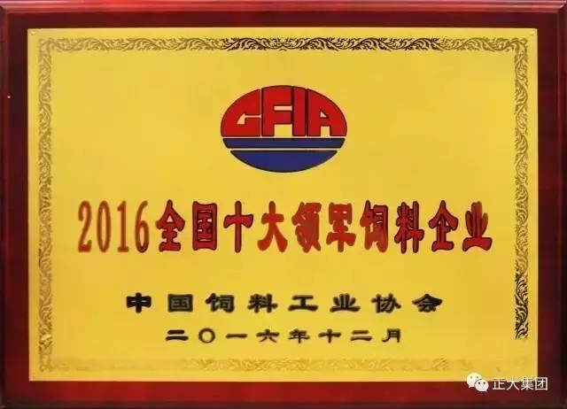 ▲正大集團(tuán)被中國飼料工業(yè)協(xié)會授予“2016全國十大領(lǐng)軍飼料企業(yè)”稱號